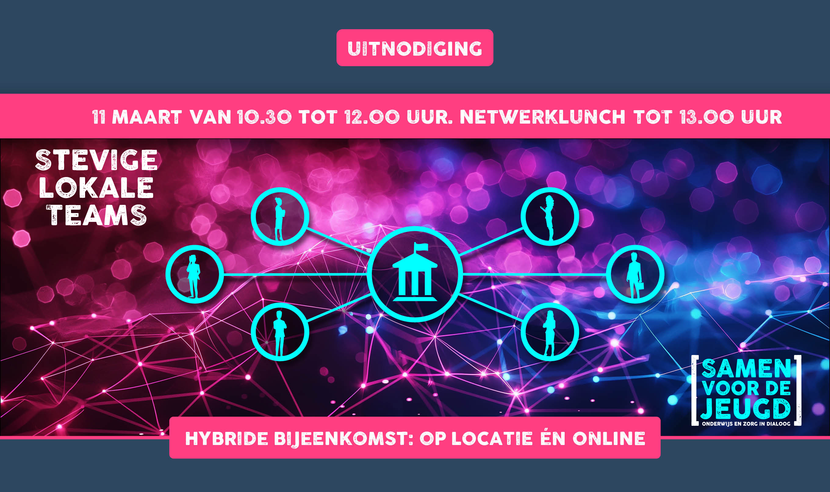 In de Hervormingsagenda Jeugd is afgesproken dat gemeenten Stevige Lokale Teams vormen die zelf (jeugd)hulp kunnen bieden. Deze teams zijn zichtbaar aanwezig op belangrijke plekken in de leefwereld van kinderen, jongeren en gezinnen, zoals scholen en kinderopvang. In de ontwikkeling naar inclusief onderwijs wordt ook het belang van verbinding met de lokale teams benadrukt. Hoe kunnen gemeenten, scholen en maatschappelijke partners zo verbinden dat samenwerken hierbij eenvoudiger en flexibeler wordt?
