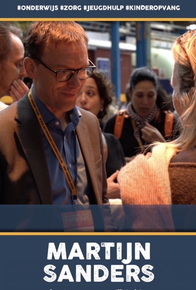 > Lees meer..Tijdens de Doen-Dag deden de Jonge-Reporters hun naam eer aan. Ze gingen als razende verslaggevers in gesprek met de deelnemers en haalden visies, wensen, ervaringen en mogelijke oplossingen op als het gaat om ondersteuning voor ieder kind. Het thema van de Doen-Dag 'van verbinding naar verandering' stond in de gesprekken centraal. In deze eerste ontmoeting vertelt Martijn Sanders – directeur kansengelijkheid en onderwijsondersteuning bij het ministerie van OCW - over zijn droom dat regelgeving wordt aangepast en geldstromen veranderen.
