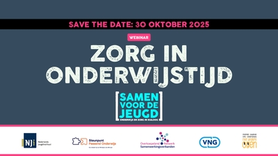 > Lees meer..Op 30 oktober van 10.30 tot 12.00 uur organiseren VNG, SPO, NJi, ONSvw en Netwerk Met Andere Ogen het eerste webinar in de reeks Samen voor de jeugd: Onderwijs en zorg in dialoog. Het thema van dit webinar is 'Zorg in Onderwijstijd' (ZiO).